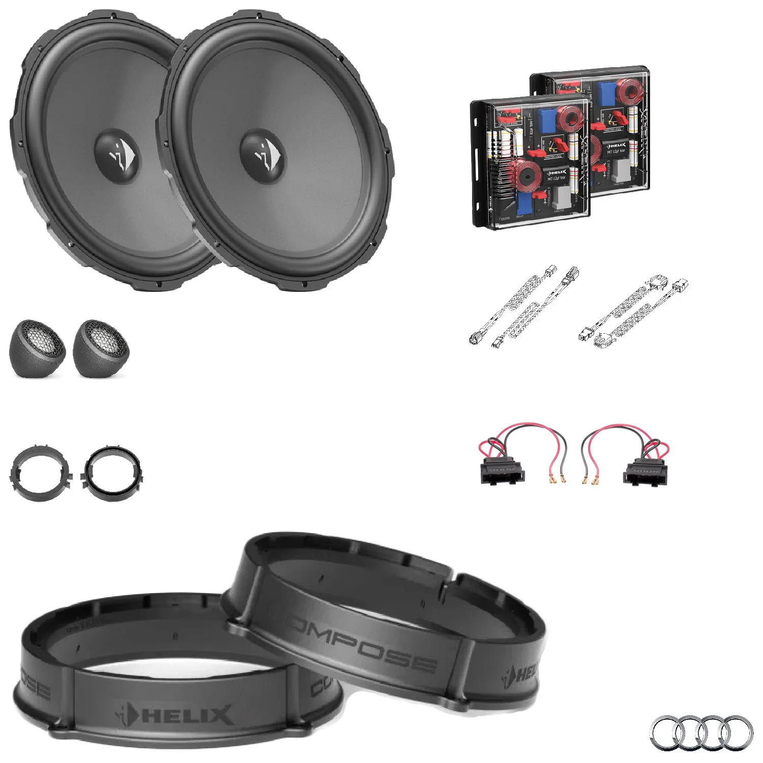This tested bundle of selected items was created specifically to upgrade the car’s stereo using the HELIX COMPOSE system.
