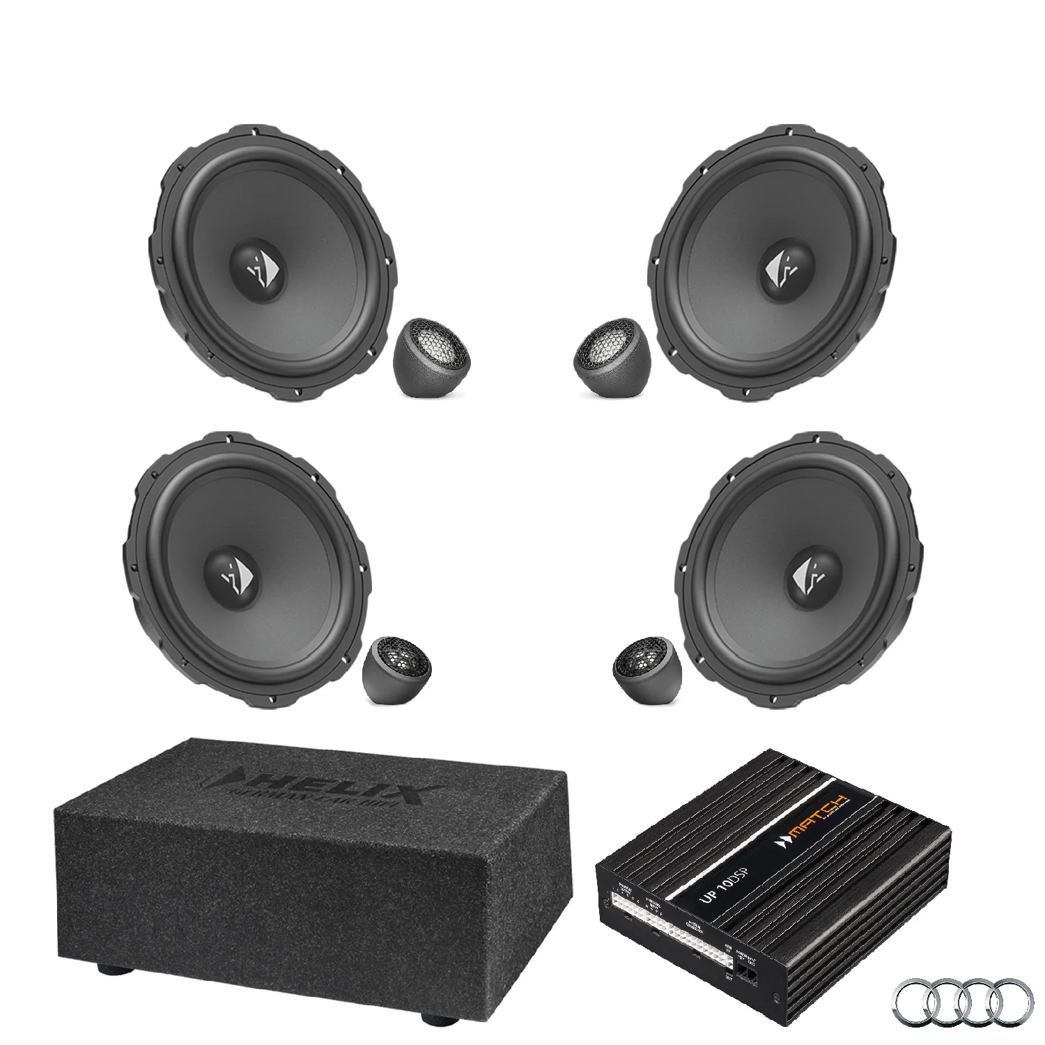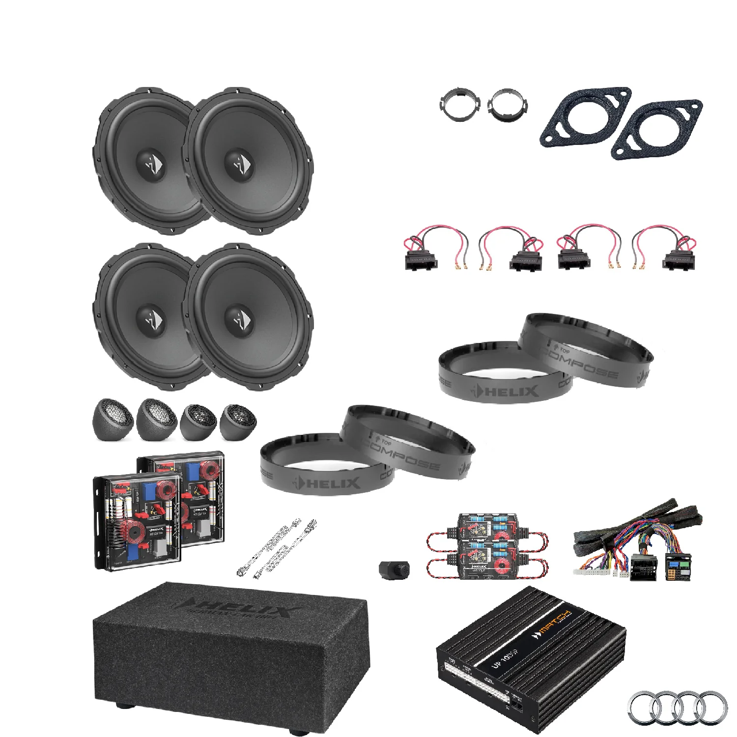 This tested bundle of selected items was created specifically to upgrade the car’s stereo using the HELIX COMPOSE system.