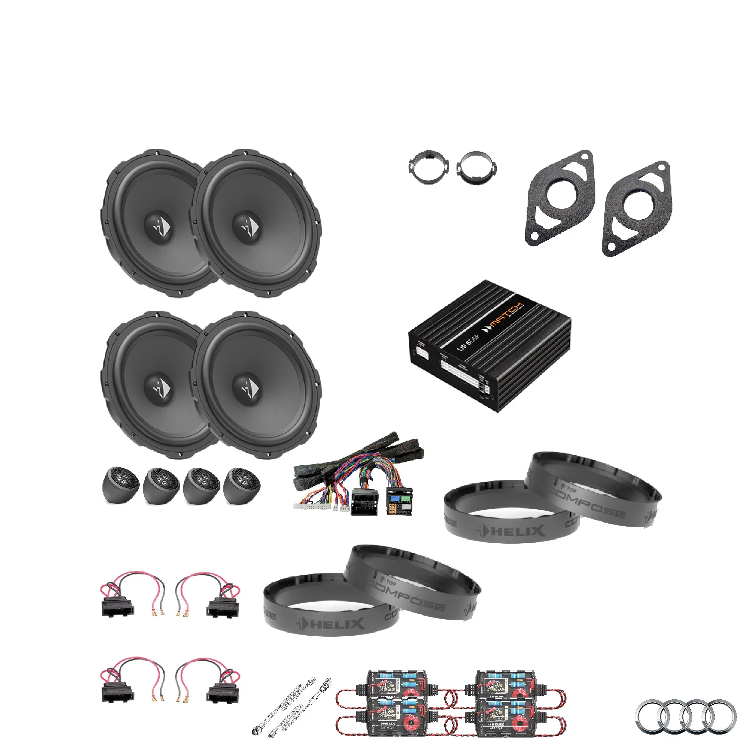 This tested bundle of selected items was created specifically to upgrade the car’s stereo using the HELIX COMPOSE system.