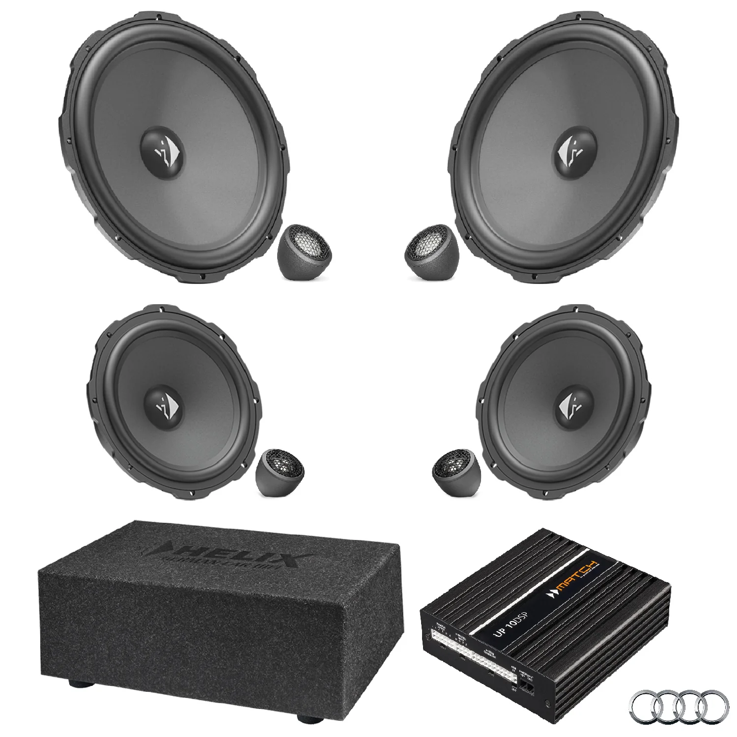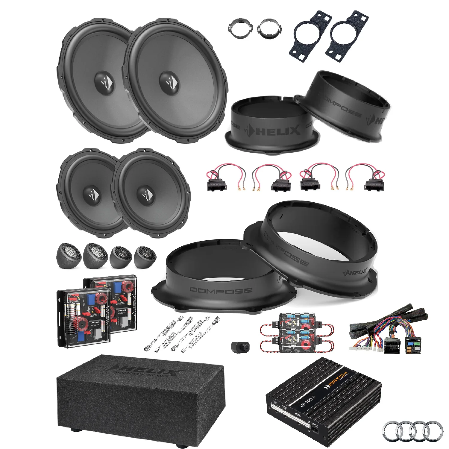 This tested bundle of selected items was created specifically to upgrade the car’s stereo using the HELIX COMPOSE system.