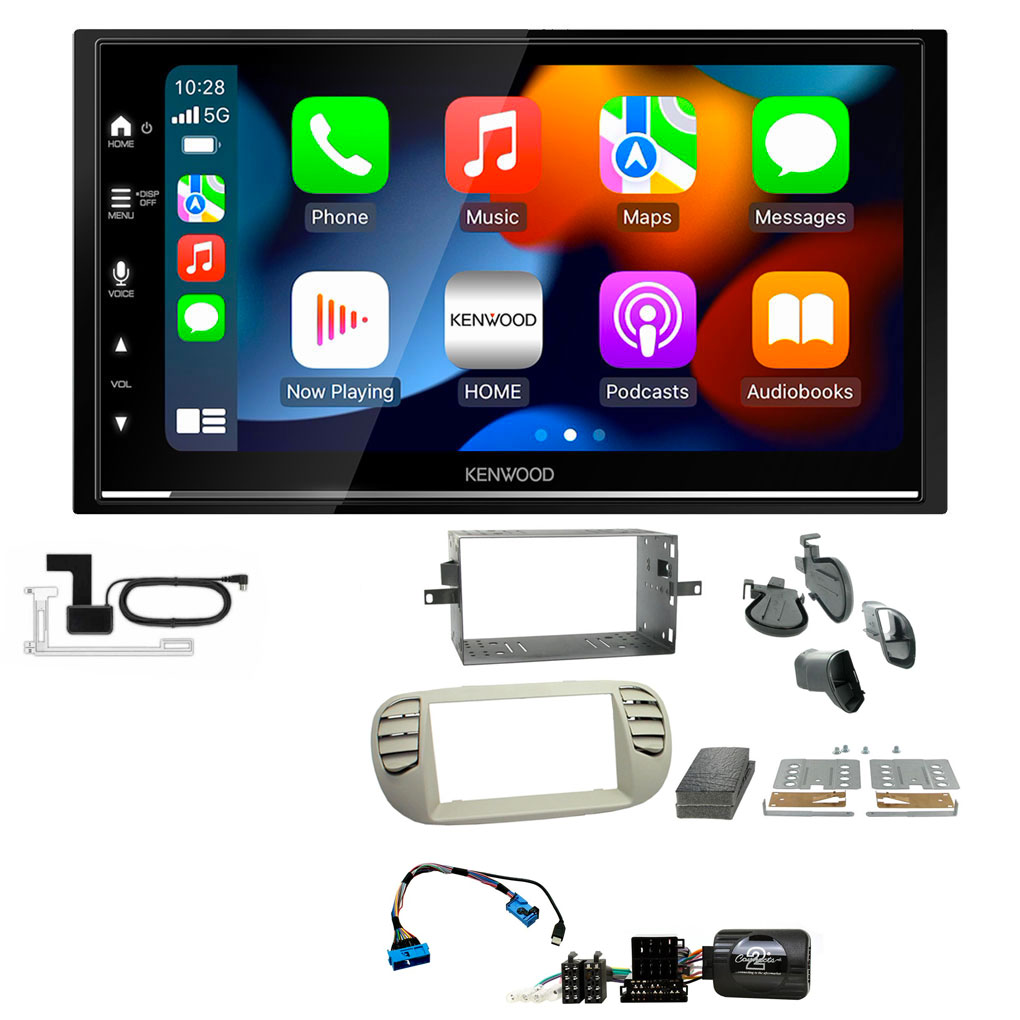 Fiat 500 2007-2015 Ivory Kenwood DMX7722DABS Wireless Apple CarPlay Android Auto DAB Stereo Upgrade Kit