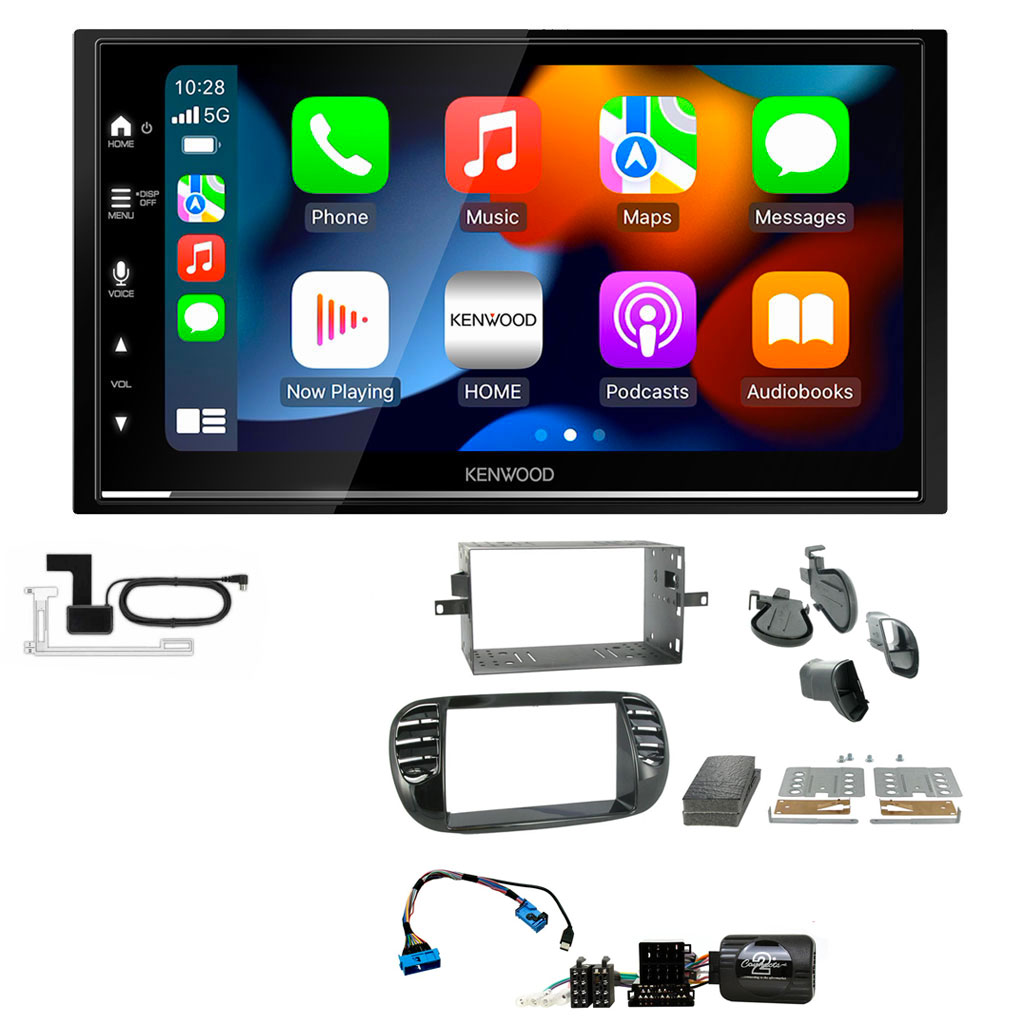Fiat 500 2007 – 2015 Piano Black Kenwood DMX7722DABS Wireless Apple CarPlay Android Auto DAB Stereo Upgrade Kit