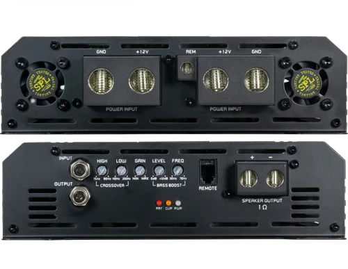 1-channel 1-ohm stable SPL high power amplifier with class D circuit, integrated active crossover and bass boost