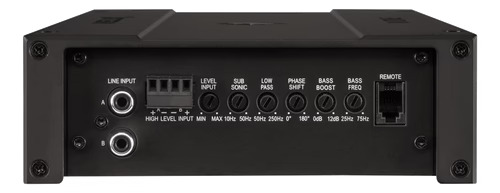 | Additional features | Active, adjustable crossover, bass boost, phase shift, Start-Stop capability, highlevel input with automatic turn on function and Advanced Diagnostics Error Protection (ADEP), bass volume cable remote control |