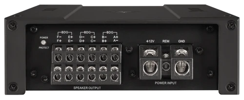 - Small footprint Class D amplifier with high output power of 100 Watts RMS @ 4 and 2 Ohms load