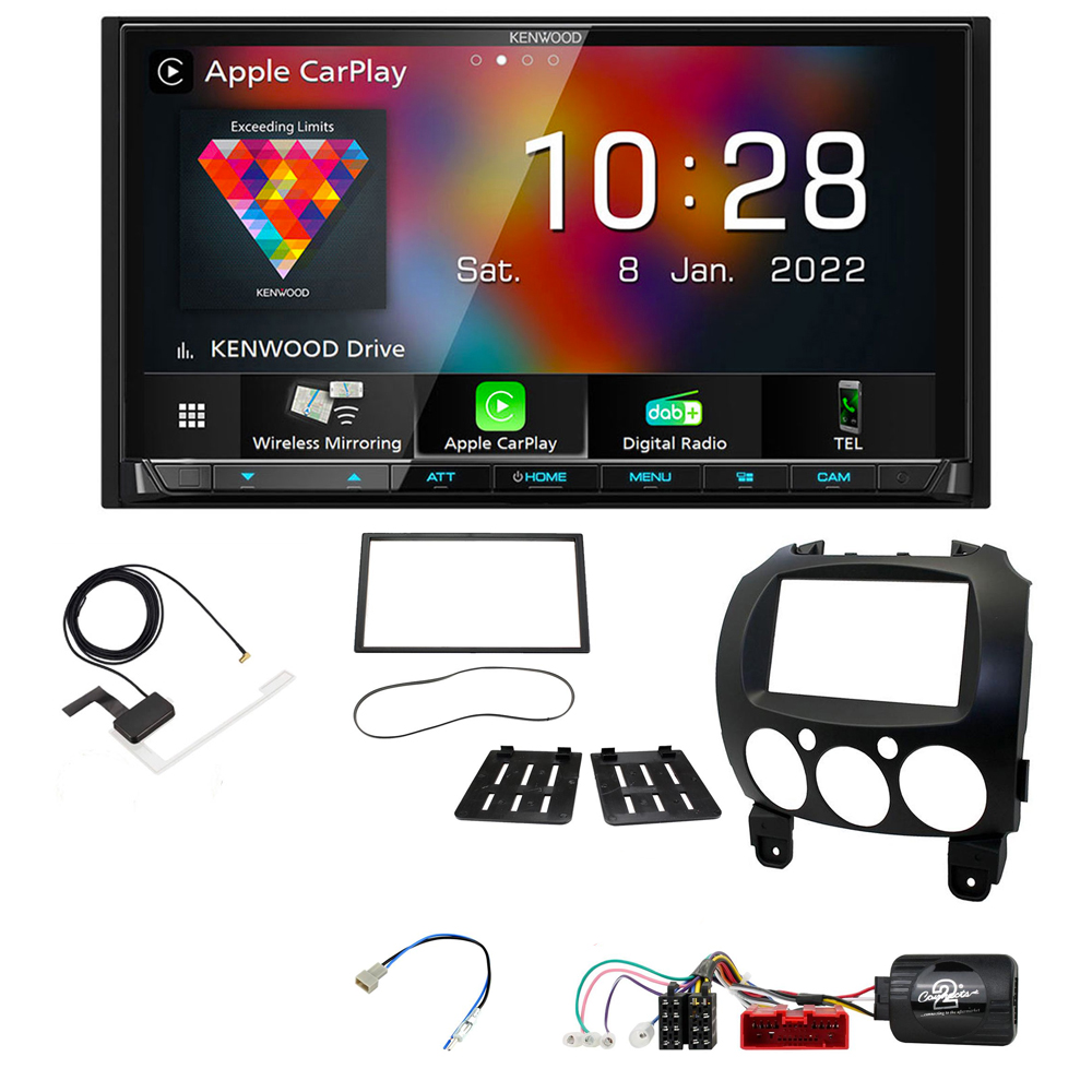 Mazda 2 (2008-2014) Kenwood CarPlay Android Auto Digital Media AV Receiver Bluetooth DAB+ Stereo Upgrade Pack