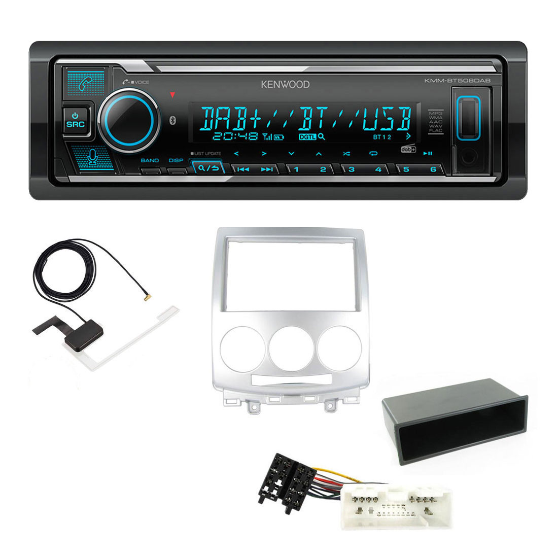 Mazda 5 2005-2010 Silver Kenwood Digital Media Receiver DAB+ Digital Radio Bluetooth Car Stereo Upgrade Kit