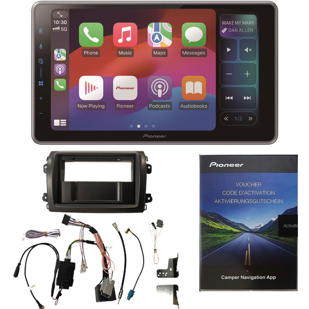 The 9.0” Custom Fit Wi-Fi® enabled SPH-DA97DAB-C-D8 can be fitted to your Campervan Fiat Ducato Gen 3 (Model Year 2021 onward) and Peugeot Boxer 3 / Citroën Relay 3 (Model Year 2025 onward). Featuring Apple CarPlay® (wireless & wired), Android Auto™ (wireless & wired), DAB+ Digital Radio, Bluetooth®, and Pioneer’s Direct Key for quick, easy, safe one touch operation.