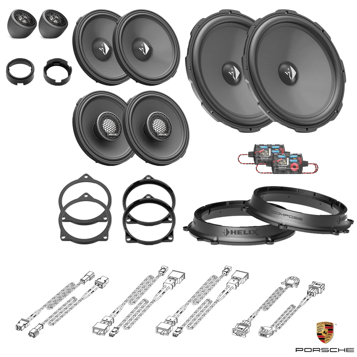 This tested bundle of selected items was created specifically to upgrade the car’s stereo using the HELIX COMPOSE system.