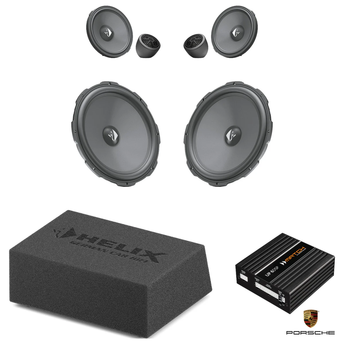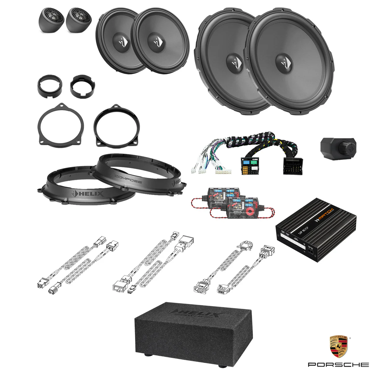 This tested bundle of selected items was created specifically to upgrade the car’s stereo using the HELIX COMPOSE system.