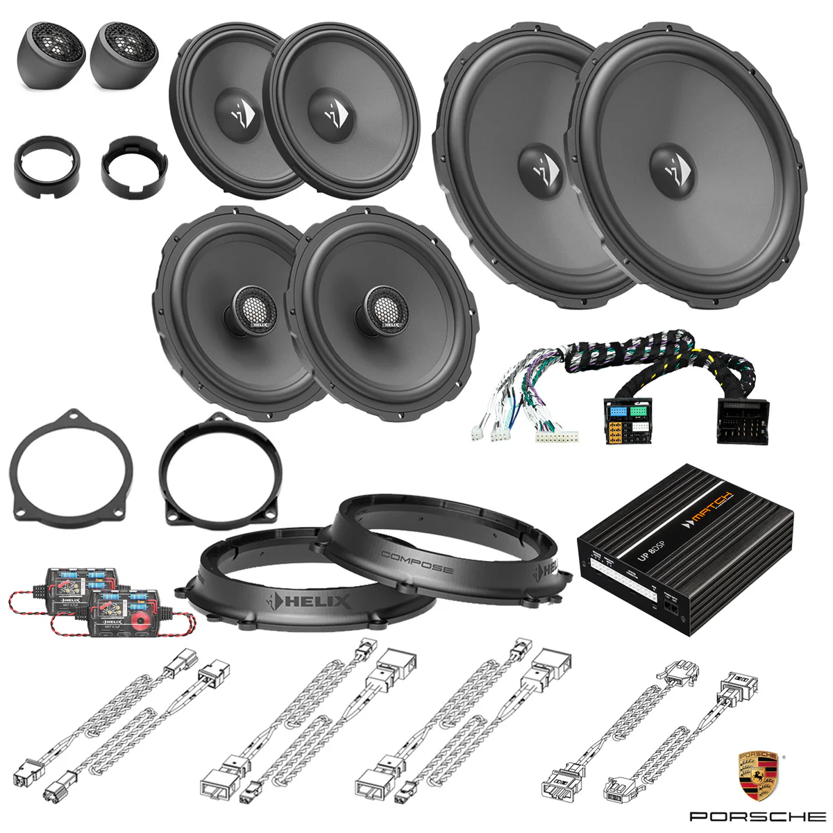 This tested bundle of selected items was created specifically to upgrade the car’s stereo using the HELIX COMPOSE system.