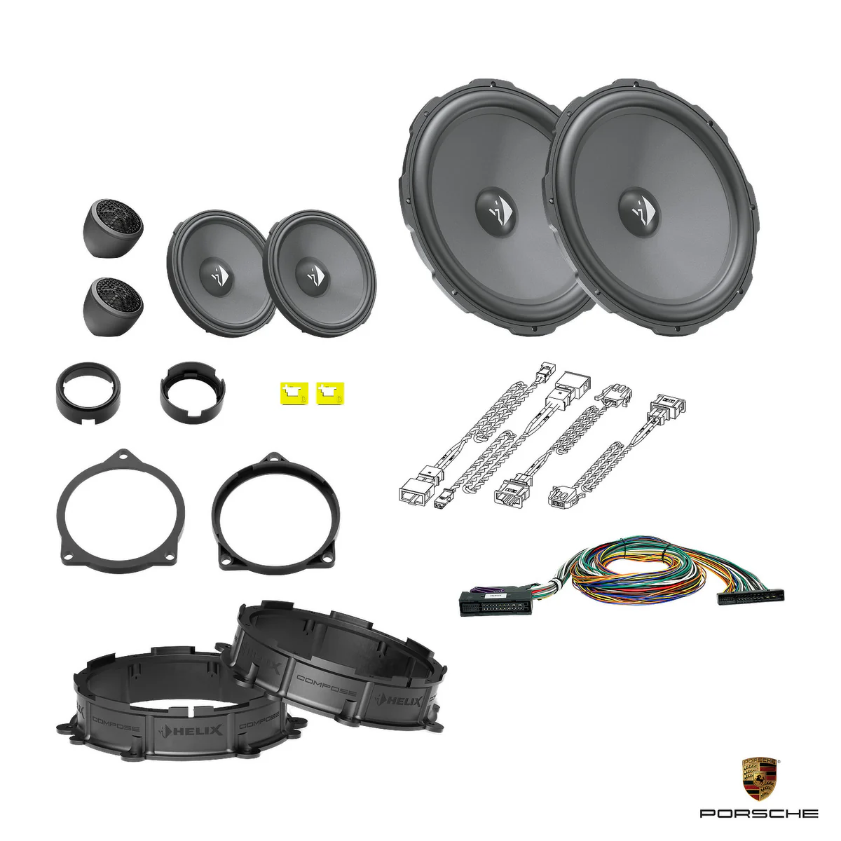 This tested bundle of selected items was created specifically to upgrade the car’s stereo using the HELIX COMPOSE system.