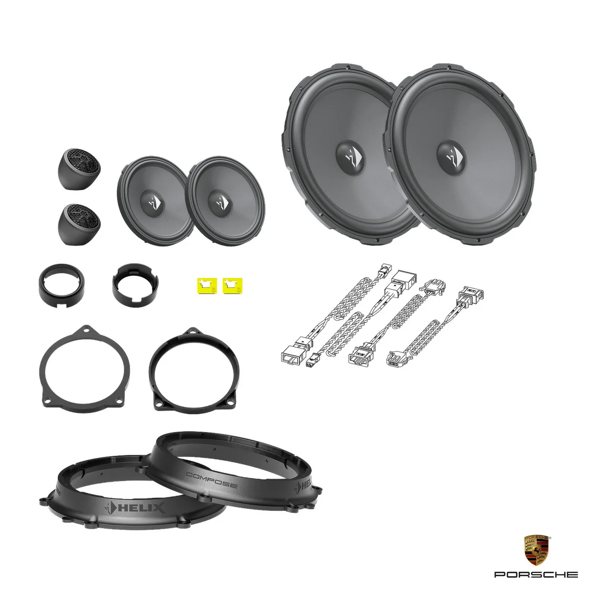 This tested bundle of selected items was created specifically to upgrade the car’s stereo using the HELIX COMPOSE system.