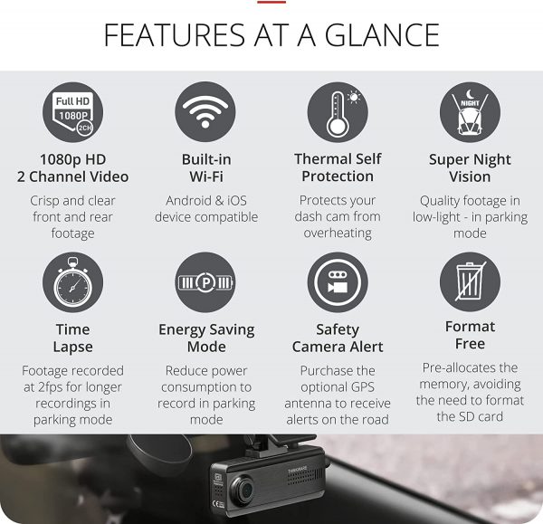 Keeping you and your car protected with its Advanced Parking Mode featuring Super Night Vision, along with Time Lapse technology. Wi-Fi Enabled App connectivity for easier control. Advanced Driver Assistance System (ADAS) when using the optional GPS antenna along with the Cyclops Speed Camera Database with Free for Life Updates.