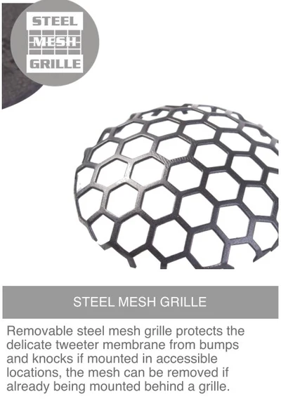 PREMIUM CONSTRUCTION – Full billet aluminium construction for increased tensile strength supporting the tweeter whilst reducing resonance of the tweeter to avoid colouration to the sound produced.